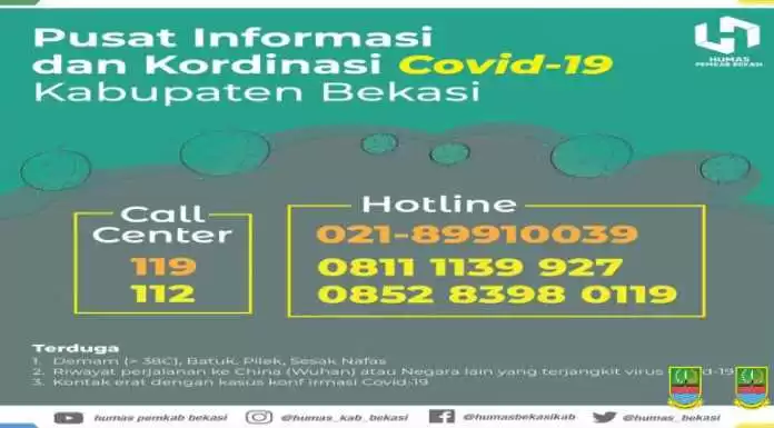 Dalam siaran pers-nya yang dirilis Senin (09 Maret 2020), Pusat Informasi dan Koordinasi COVID 19 Kabupaten Bekasi (PIKOKABSI) mengajak masyarakat luas untuk meningkatkan kewaspadaan dengan tetap tenang dan tidak panik.