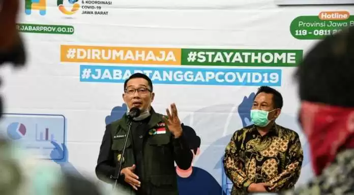 Gubernur Jawa Barat Ridwan Kamil mengumumkan hal tersebut usai Rapat Koordinasi (Rakor) Dampak Pandemi COVID-19 Terhadap Perekonomian Jawa Barat, di Gedung Sate, Kota Bandung, Kamis (26 Maret 2020).